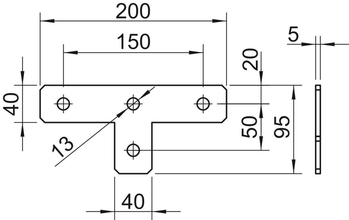 Placa de união versão em T 200x95x40x4 Aço inoxidável, livre de ferrugem A2 1.4301 brilhante, pós-tratamento