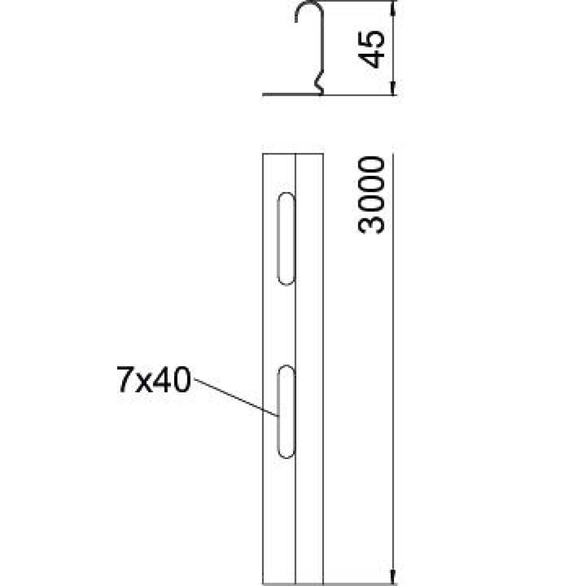 Separador para caminhos de cabos 45x2995 Aço PES135 - Poliéster preto RAL 9005