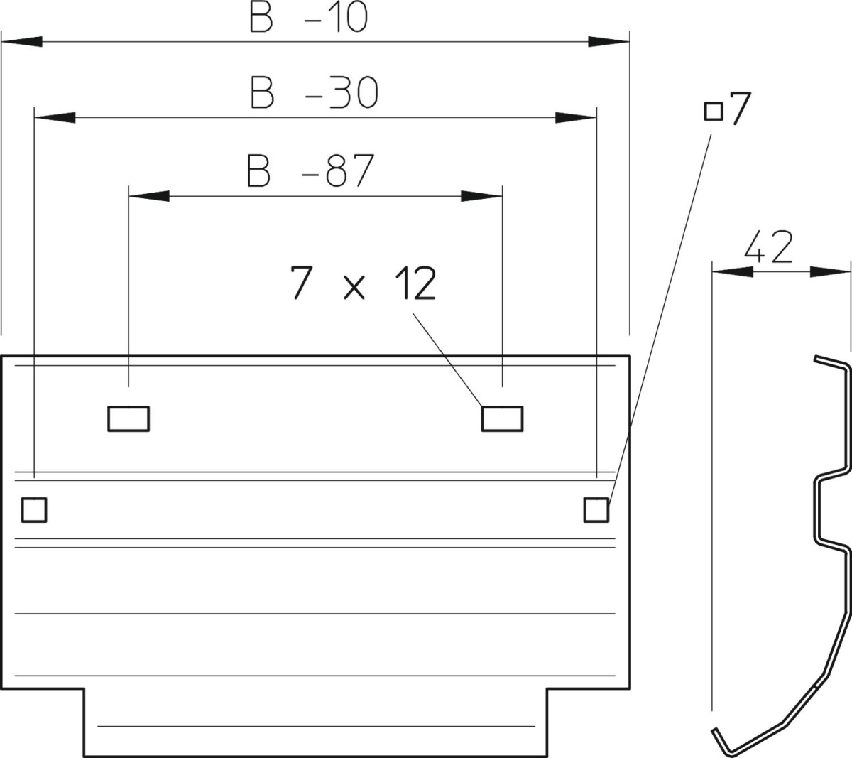 Placa de suporte para montagem no degrau, para a saída vertical de cabos.