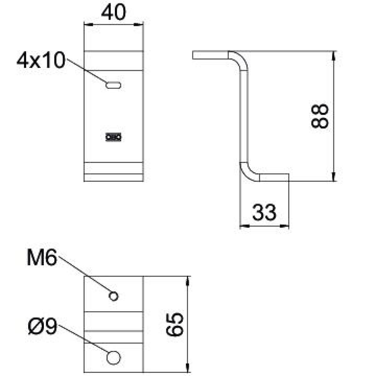 Suporte Z para BKRS para altura de sistema 100 mm 65x40x88 Aço Galvanizado por imersão a quente após maquinação zinco
