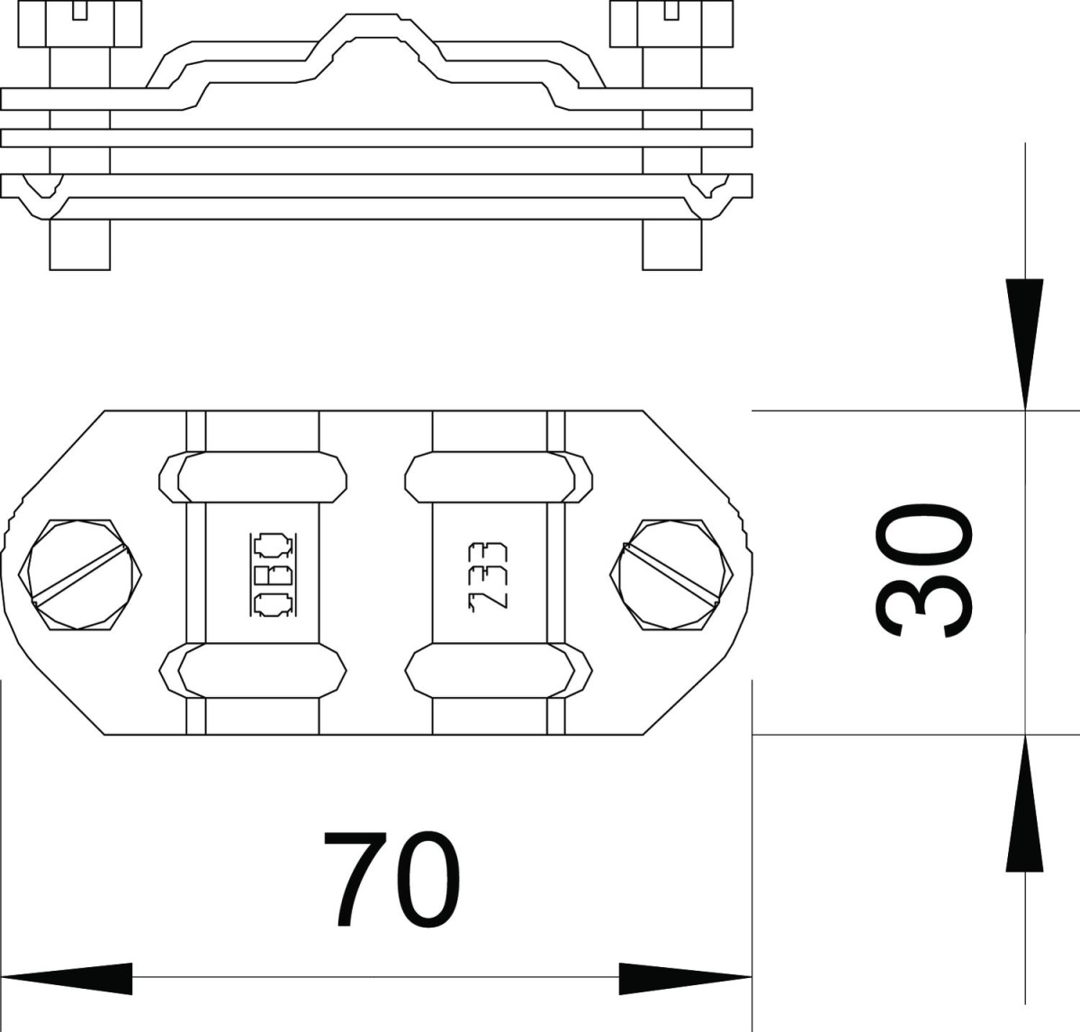 • ajuste: Rd 8-10 x FL 30-40, FL 30 x FL 30-40 • com 2 parafusos sextavados M8 x 20 em aço inoxidável (VA) • placa intermédia em alumínio/cobre • parte superior em cobre, parte inferior em aço inoxidável