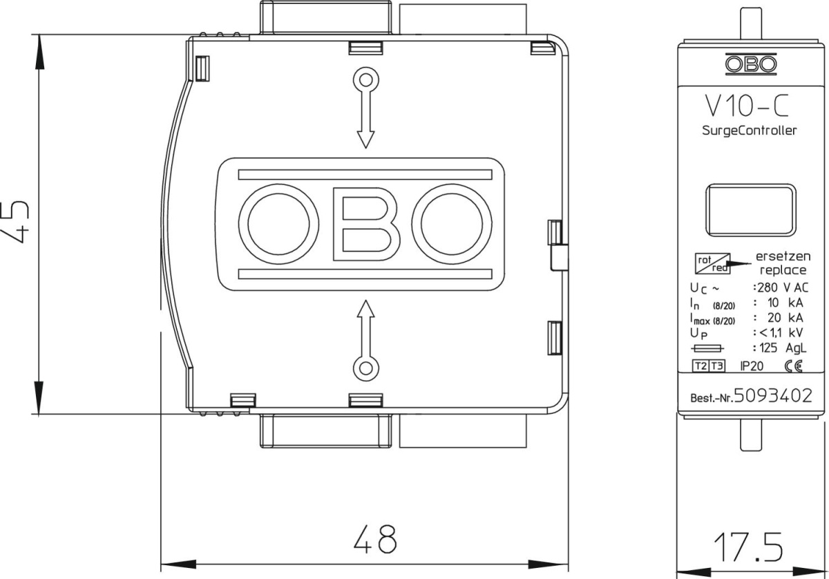 Descarregadores de sobretensões do tipo 2+3 conforme EN 61643-11 • Módulo de encaixe e separável da base sem ferramentas • Inclui dispositivo de separação térmico e dinâmico e indicação visual de avaria • Elevada condutividade de energia com longa durabilidade