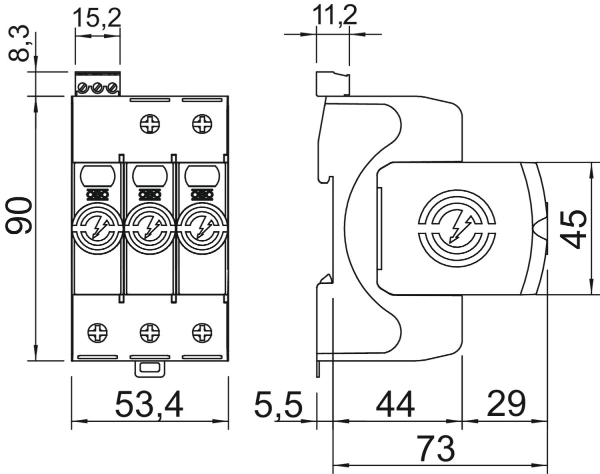 • capacidade de descarga até 40 kA (8/20) por polo através do varistor com capacidade de alto desempenho