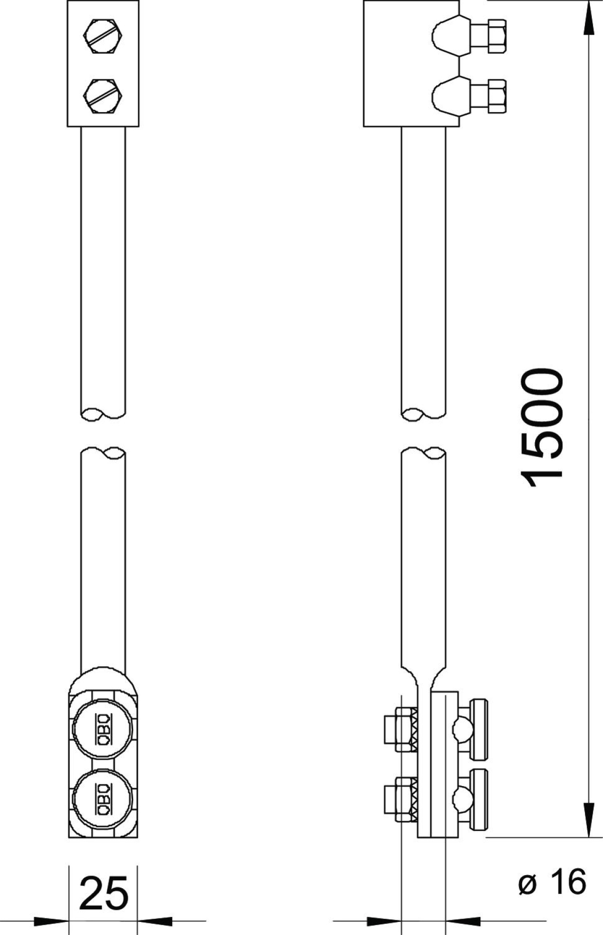 Haste de transição 1500mm Aço Galvanizado por imersão a quente após maquinação