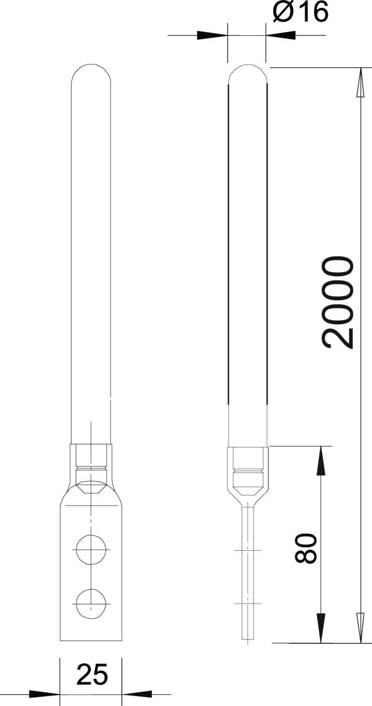 Haste de transiçãocaptora 2000mm Aço Galvanizado por imersão a quente após maquinação