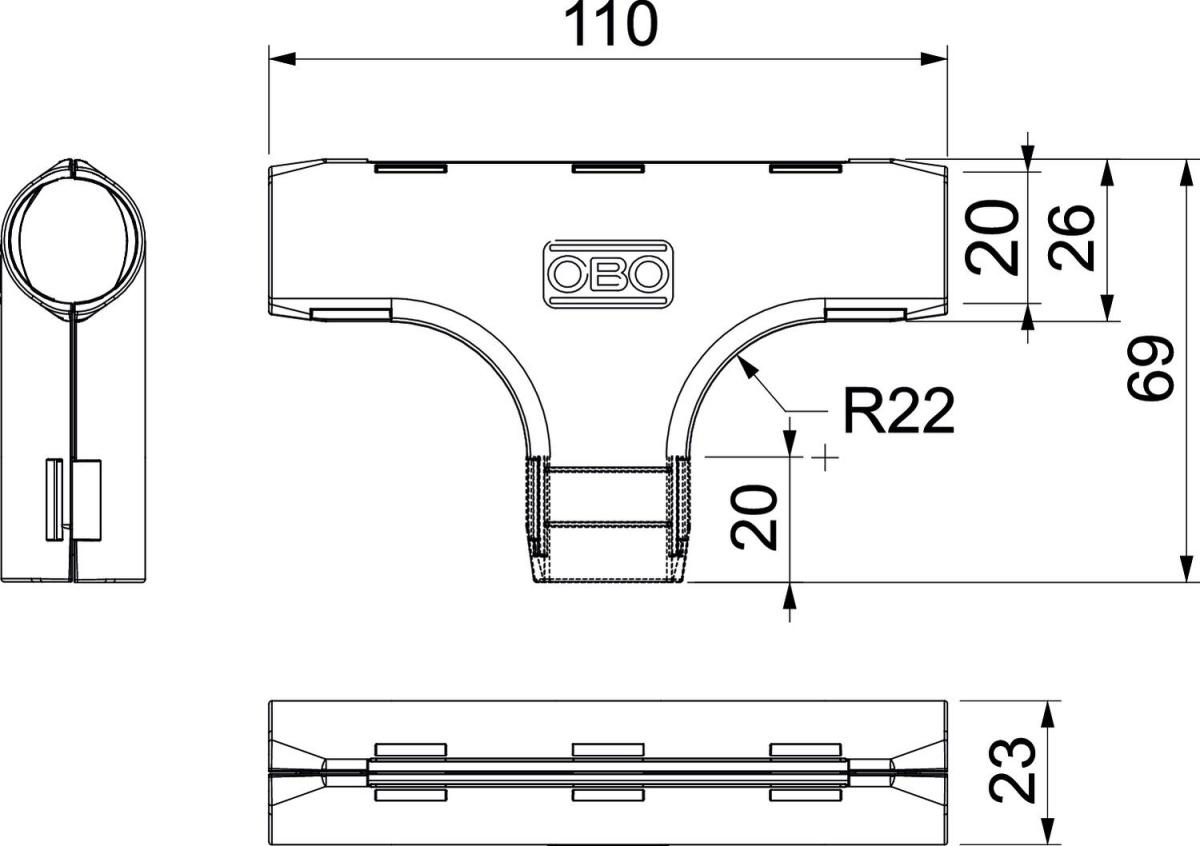 Acessório para tubos de instalação elétrica em plástico para a criação de derivação em T. Adequada para tubo Quick-Pipe® ou tubos corrugados. Fecho e abertura sem ferramentas. Utilizável com uma amplitude de temperaturas de - 25° a + 60 °C.