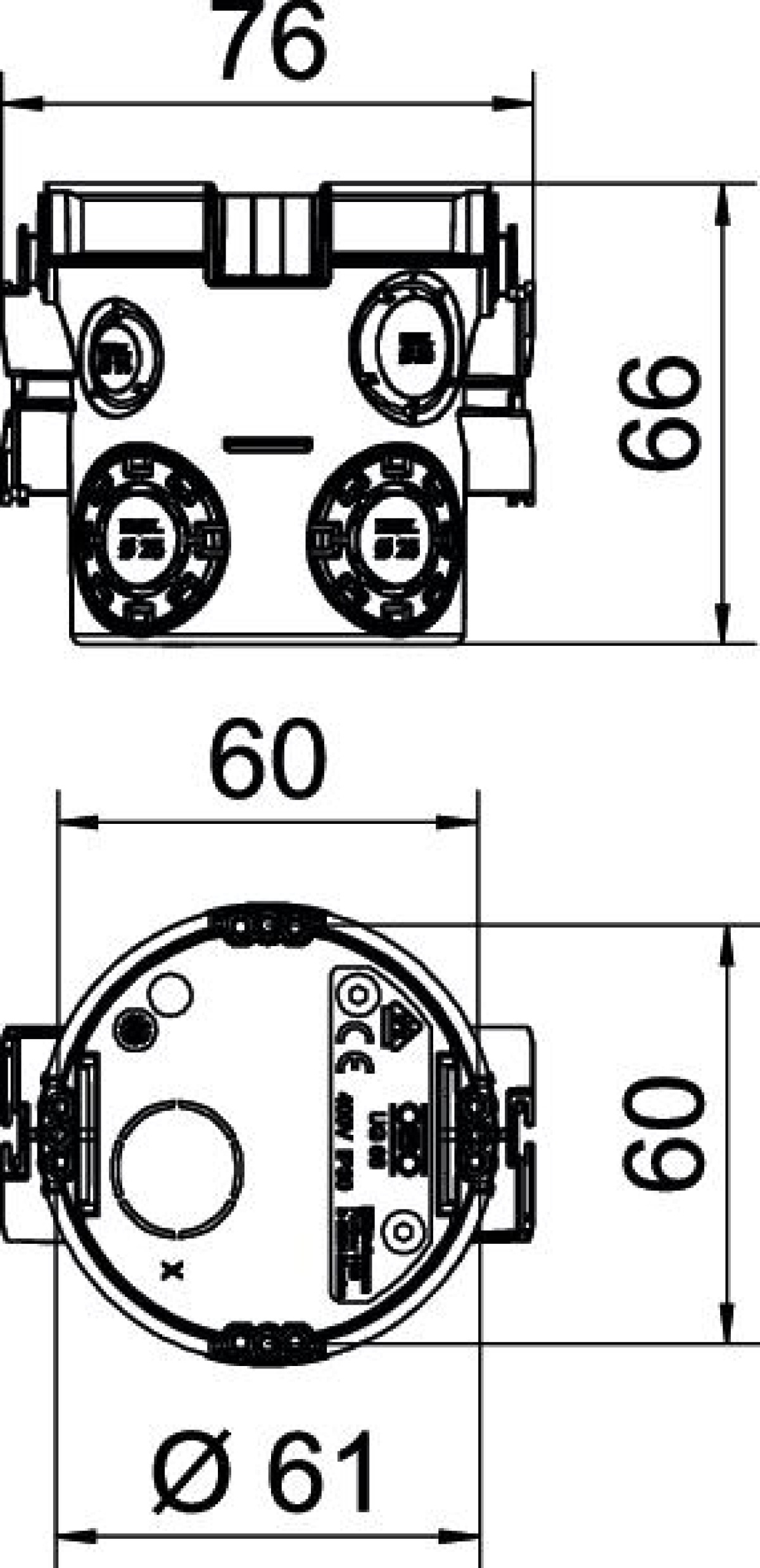 Caixa de aparelhagem UP Caixa a granel, 250 unidades Ø60mm, H66mm