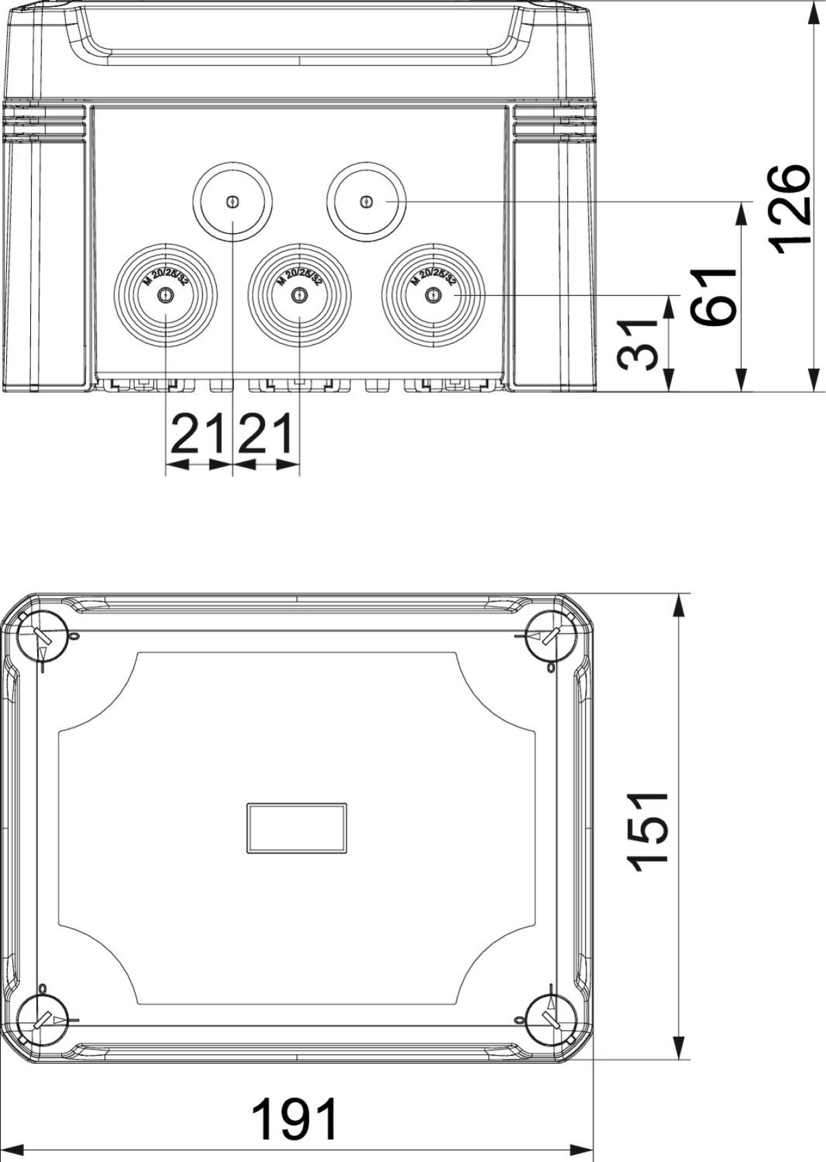 Caixa de derivação para conectar cabos e tubos em áreas interiores e exteriores. Forma retangular com entradas quebráveis. Adequado para montagem na parede e teto com opção para fixação externa ou montagem através de parafusos nos cantos. Particularmente resistente ao impacto com IK09. Tampa com fecho rápido, pode ser selada a chumbo. Fabricada em materiais resistentes aos raios UV e livres de halogéneo.