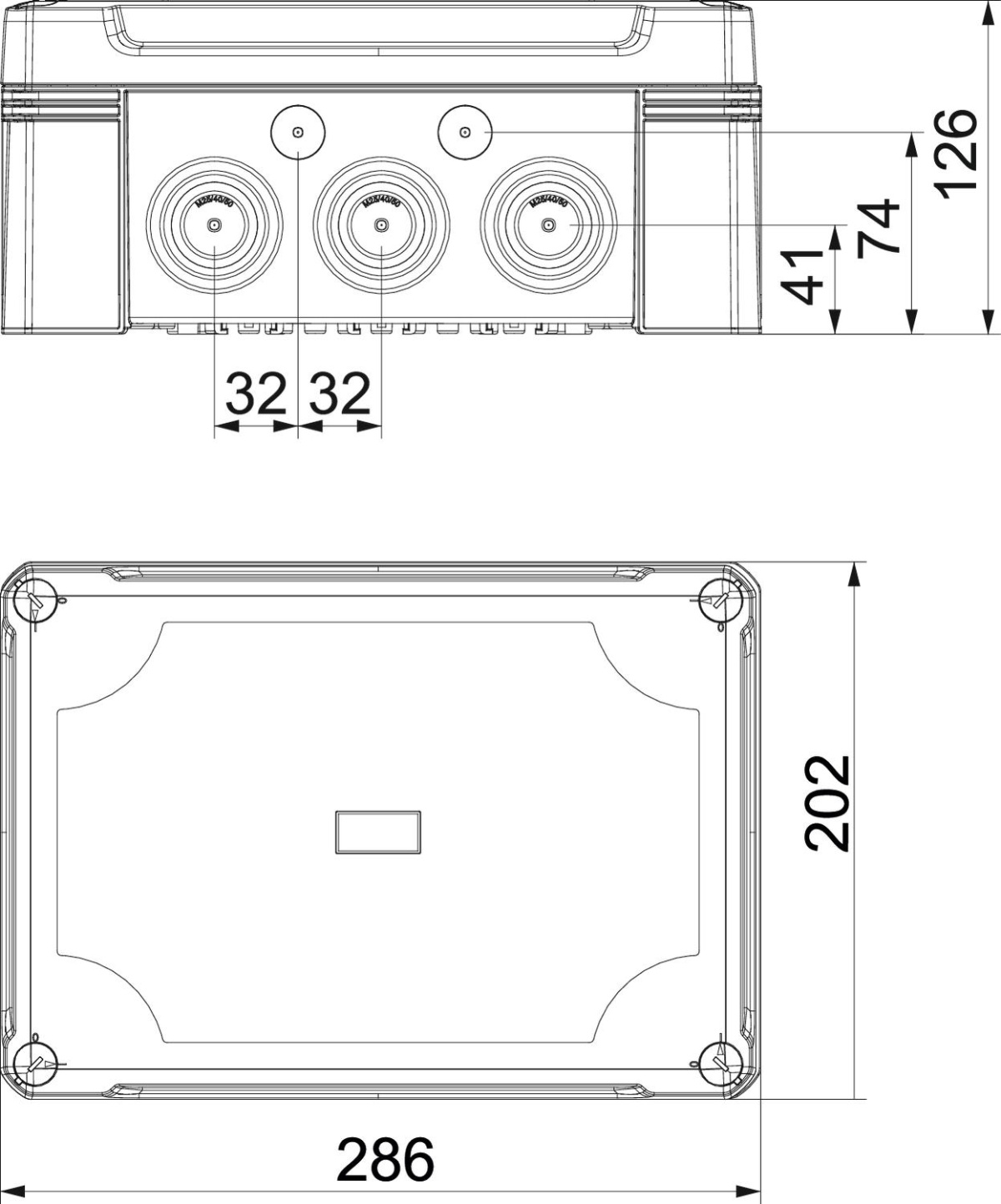 Caixa de derivação para conectar cabos e tubos em áreas interiores e exteriores. Forma retangular com entradas quebráveis. Adequado para montagem na parede e teto com opção para fixação externa ou montagem através de parafusos nos cantos. Particularmente resistente ao impacto com IK09. Tampa com fecho rápido, pode ser selada a chumbo. Fabricado em materiais resistentes aos raios UV e livres de halogéneo.