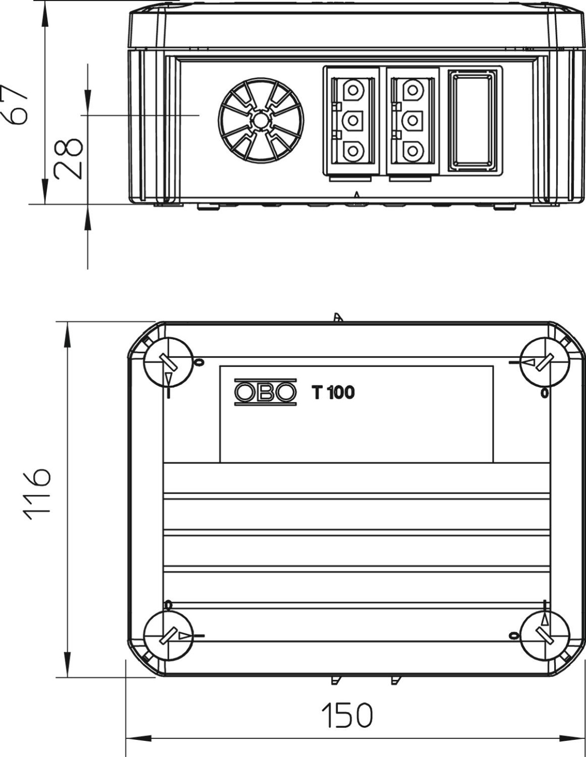 Caixa de derivação com ficha Wieland 1s4 3B3 para conectar cabos e condutas em áreas interiores e áreas exteriores protegidas. Formato retangular com entradas quebráveis nas laterais e entradas quebráveis na base. Adequado para a montagem na parede / teto e para a montagem em suportes para caixas de derivação. Com opção de fixação interna e montagem através de parafusos nos cantos. Tampa com fecho rápido, pode ser selada a chumbo. Fabricada em materiais resistentes aos raios UV e livres de halogéneo. Caixa de derivação de acordo com a DIN EN 60670. Resistente ao fio incandescente segundo a DIN EN 60695-2-11, temperatura de ensaio 650 °C.