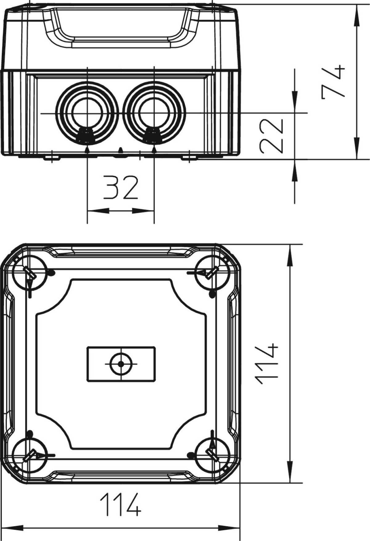 Caixa de derivação com tampa alta 114x114x76 PolipropilenoPolicarbonato cinzento claro RAL 7035