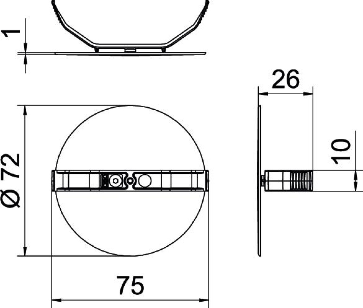 Tampa com uma mola de expansão elástica injetada de forma concêntrica, para caixas de aparelhagem com Ø 60 mm, borda da tampa plana, superfície com acabamento áspero.