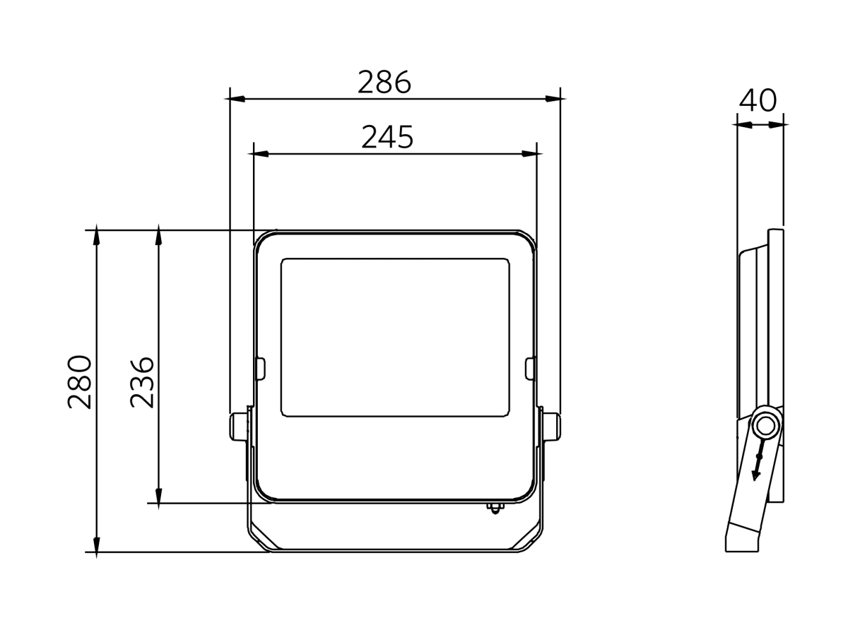 Complete floodlight family from 10 to 200W. Equipped with breather to prevent condensation.