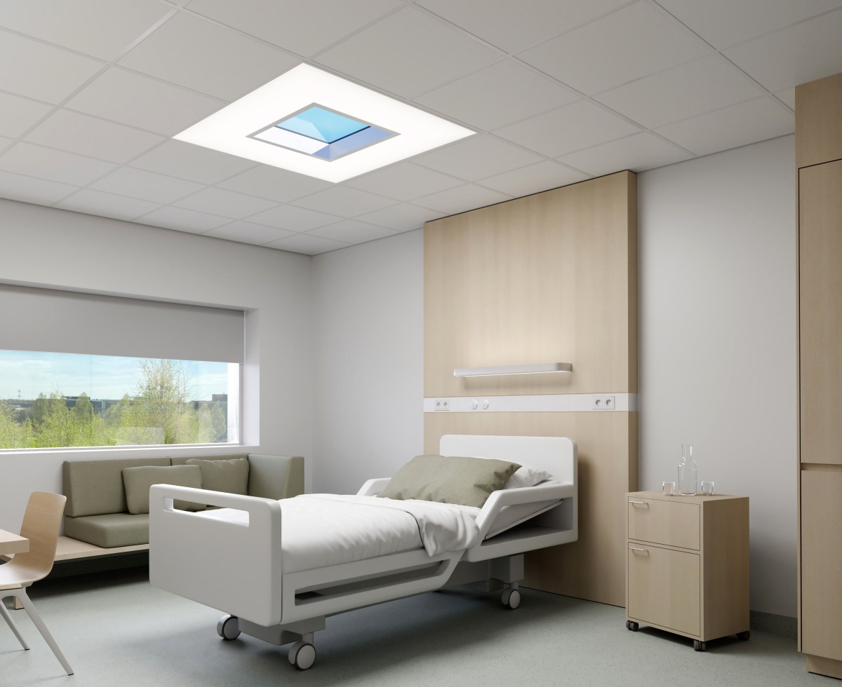 As claraboias NatureConnect não se distinguem de uma janela real, proporcionando um efeito de luz natural e uma vista do céu, aumentando a sensação de espaço. O céu azul imita a luz do dia, utilizando receitas de luz com níveis melanópicos elevados, elevando o desempenho das pessoas e, ao mesmo tempo, oferece uma iluminação funcional.
