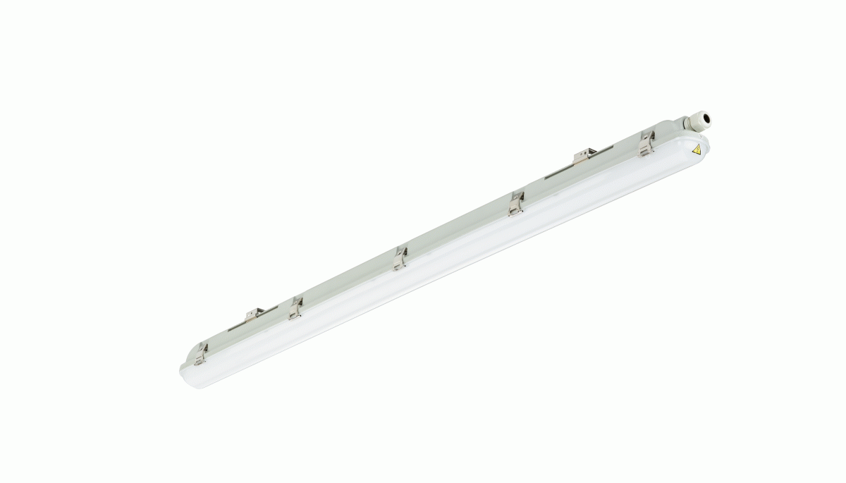 Waterproof TLED, L1200 mm, Policarbonato, Cinza, Unidade de fonte de alimentação (aceso/apagado), 3600 lm, 30 W, 120 lm/W, 4000 K, (0.38,0.38) SDCM≤5, Refletor oval, Opalino, Policarbonato, IP65 | Proteção contra penetração de pó, à prova de jato, IK08 | 5 J protegido contra vandalismo, Classe de segurança I, Conector de encaixe, 3 polos