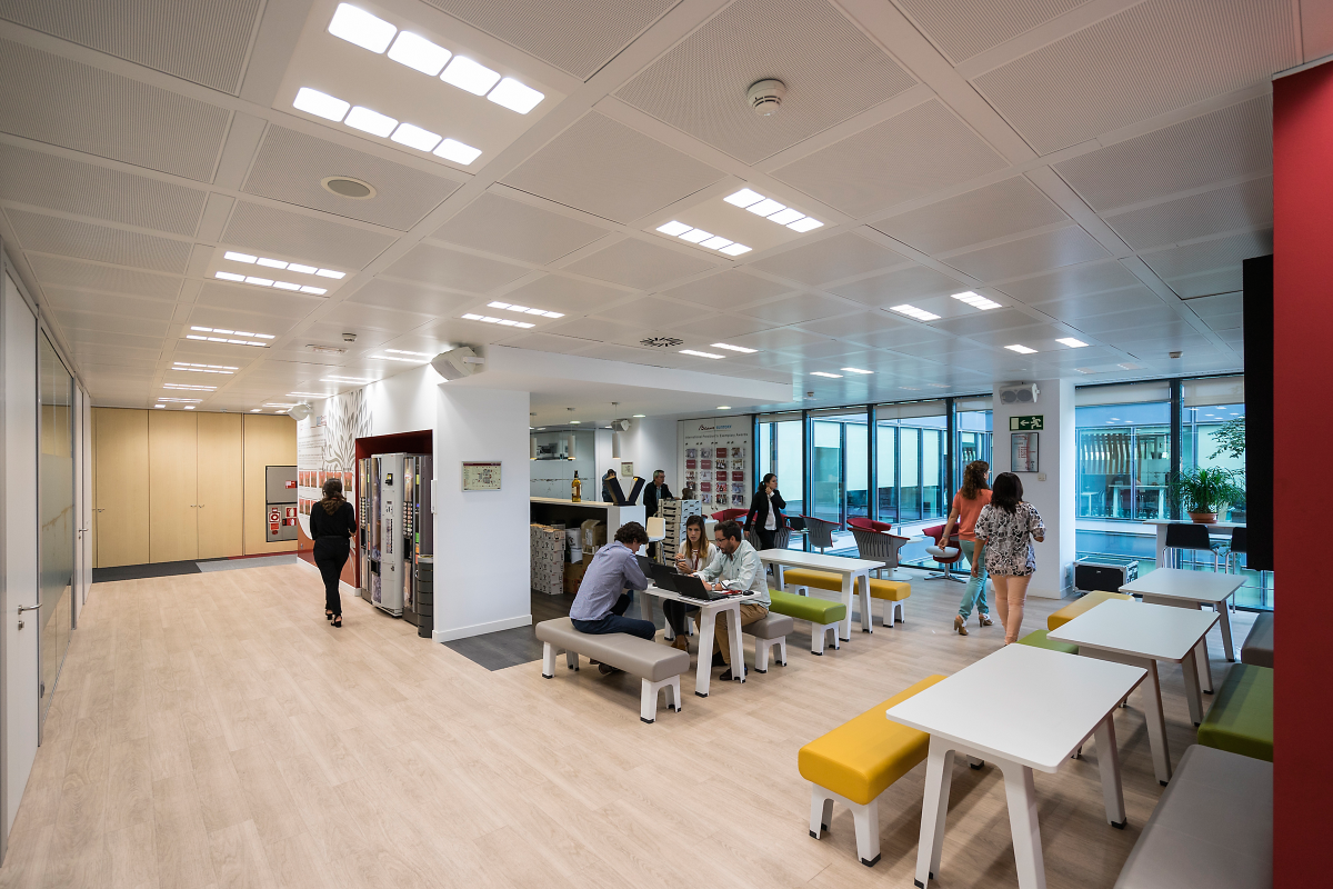 No que respeita à iluminação de um espaço de escritório com luminárias LED, as pessoas estão geralmente dispostas a investir na sustentabilidade, desde que haja retorno do investimento. Ao mesmo tempo, o sistema deverá respeitar as normas de iluminação de escritórios para assegurar um ambiente de trabalho confortável. A PowerBalance RC360 oferece, por um lado, a combinação ideal entre um desempenho sustentável e o retorno do investimento e, por outro, a conformidade com as normas de escritório relevantes. Reduz para menos de metade os custos de energia em comparação com uma solução T5 e a fonte de luz tem uma duração superior. Isto resulta em custos operacionais significativamente inferiores, garantindo um retorno do investimento que satisfaz as exigências do mercado específico. A arquitetura da PowerBalance RC360 permite uma gama de luminárias modulares e semimodulares altamente versáteis. Estas luminárias podem ser facilmente montadas em tetos com barras T expostas ou ocultas, bem como em tetos de estuque e em tetos suspensos (bandraster).