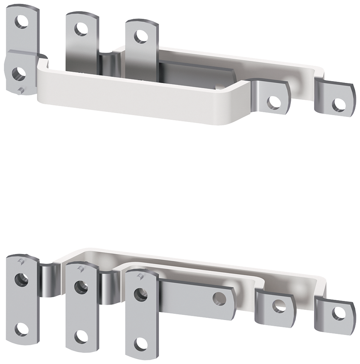Set of link rails for reversing contactor assemblies 3RT1.6 Infeed and output side, phase swapping output side , contactor with busbar connection (without box terminal) Simple, efficient and always up to date - SIRIUS modular system.