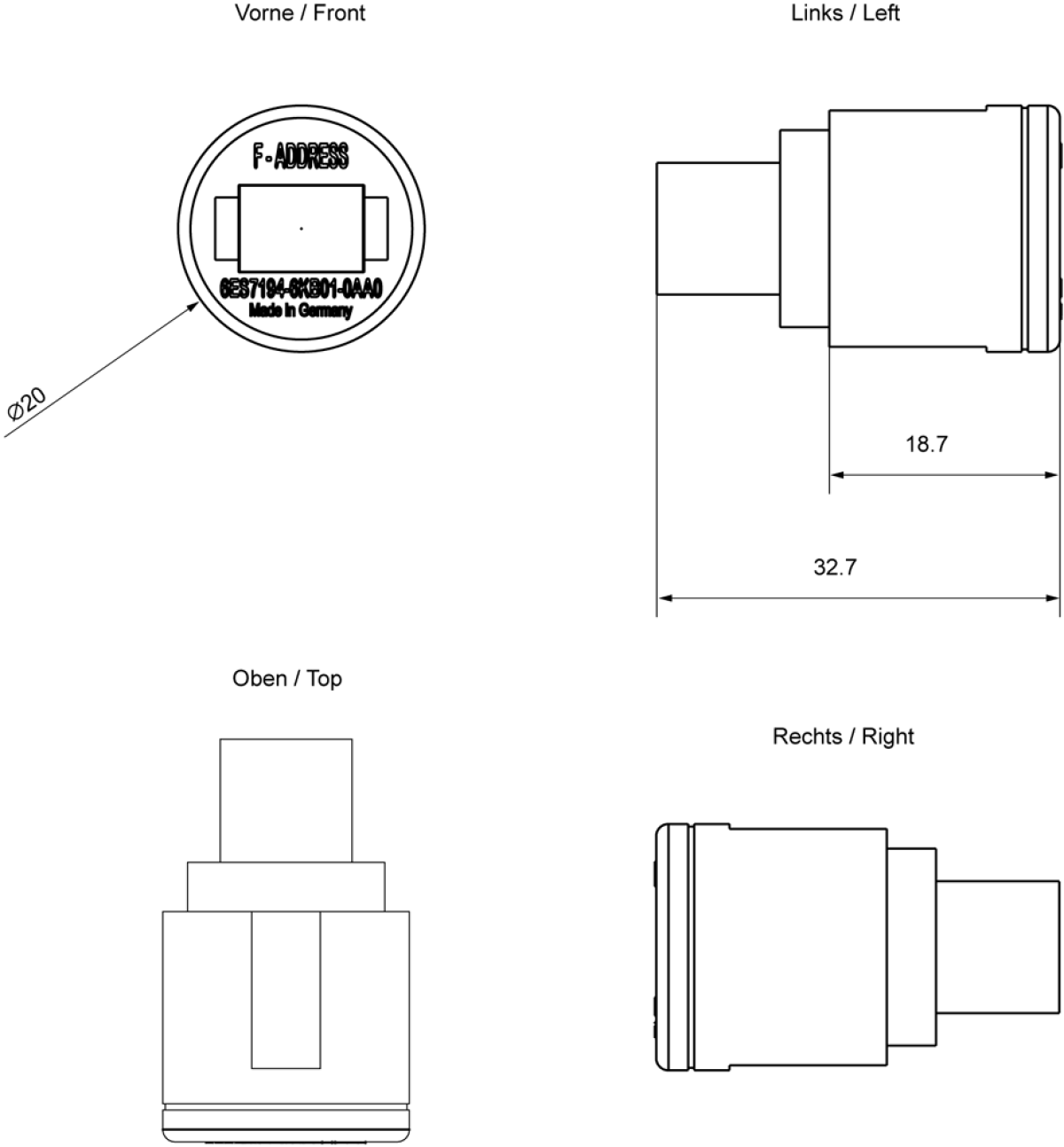 SIMATIC DP, spare part, E-coding plug (metal) for fail-safe distributed I/O ET 200, IP 65/67, 5-pole, M12 1 unit per packing unit Coding plug for saving the fail-safe address. This enables automatic and central assignment of the F-address from the engineering. In case the module has to be replaced, all the user has to do is plug the connector into the new module.