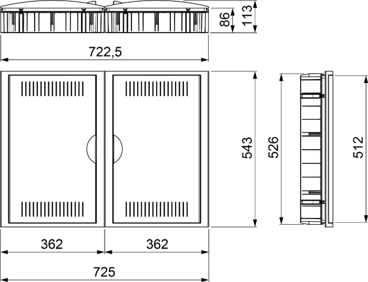 Registro de terminação de rede de 723 x 526 x 86 mm. Embutido