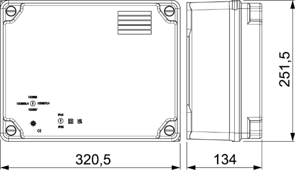 Caixa de ligação estanque 320 x 250 x 135 mm sem cones. Cor cinzenta.