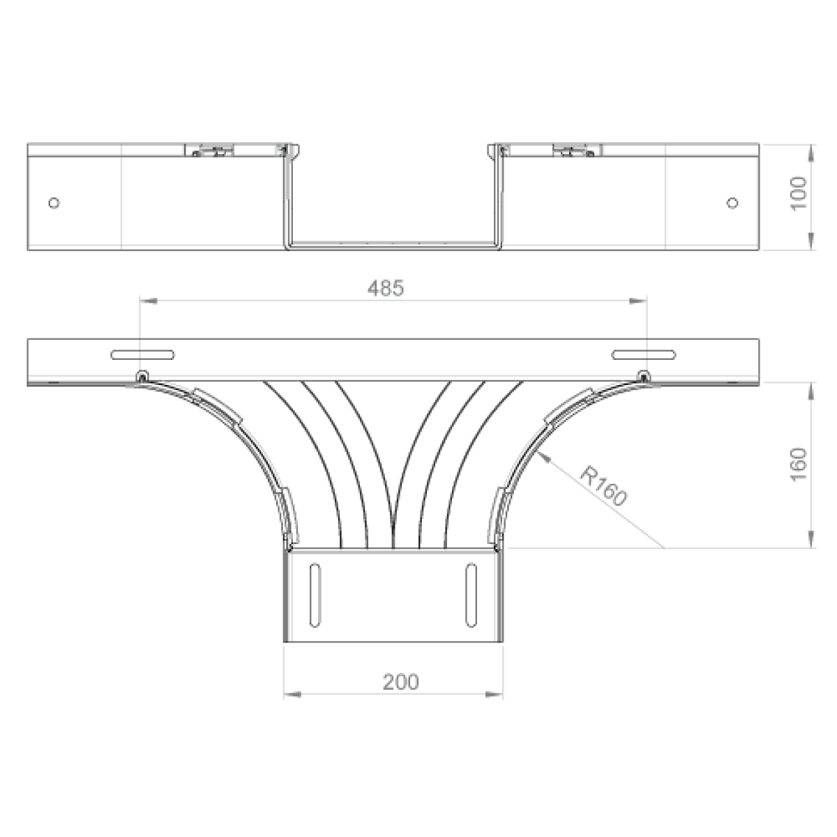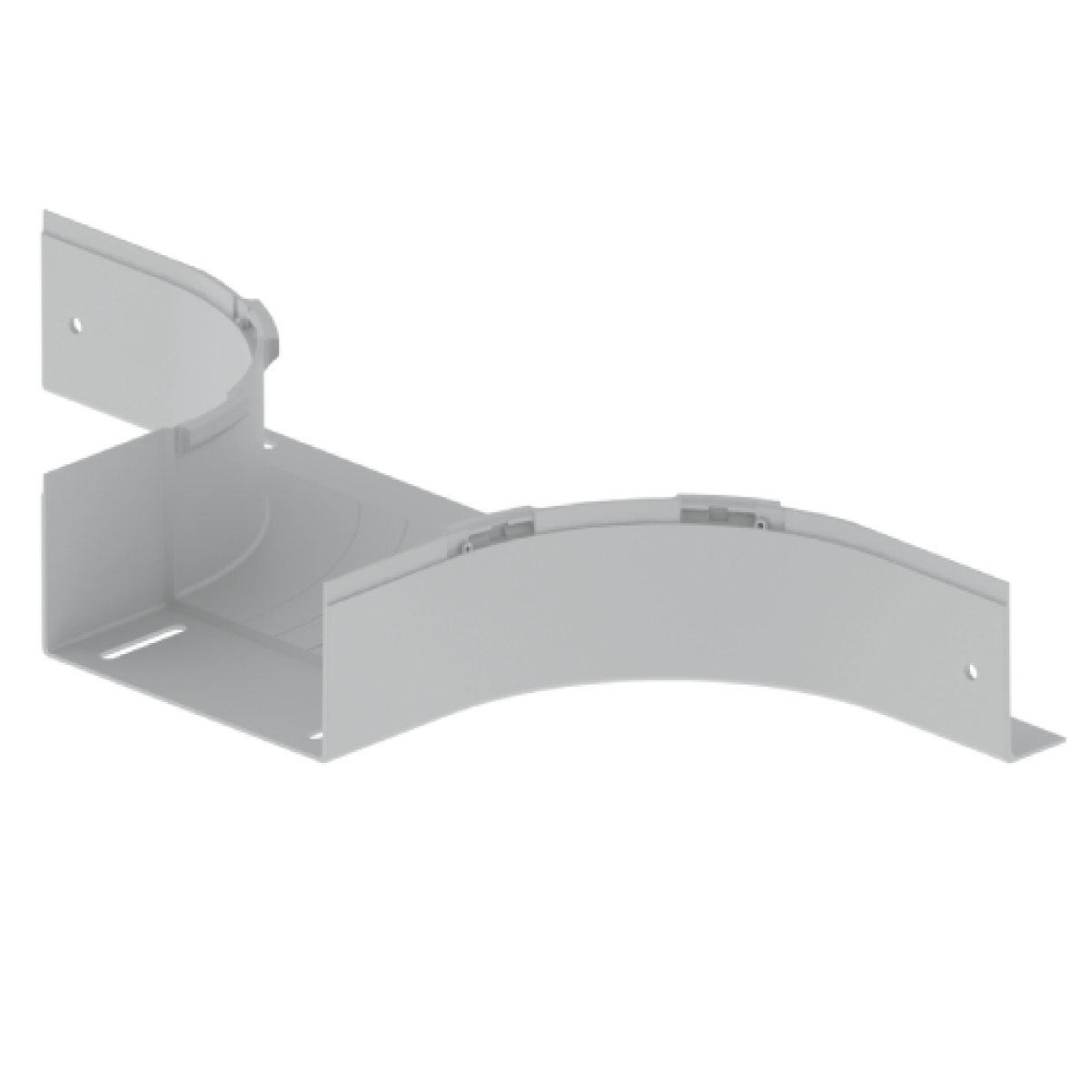 Para derivações 90°. Cor: Cinzento. Material isolante. Não perde secção com respeito ao caminho de cabos. Raio de curvatura de 160mm. Rapidez e facilidade de montagem. Não são necessárias uniões para a montagem. Bom comportamento à intempérie. Produto sem halogéneos fabricado com componente termoplástico 100% reciclado.